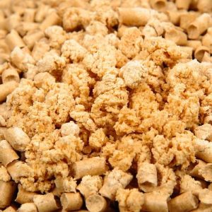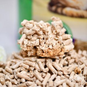 于是,為了解決帶出的問題,我就選擇了條狀的貓砂。剛開始是用LOVECAT小麥砂的。因為這款是植物的貓砂,所以會有一股小麥麩的味道。