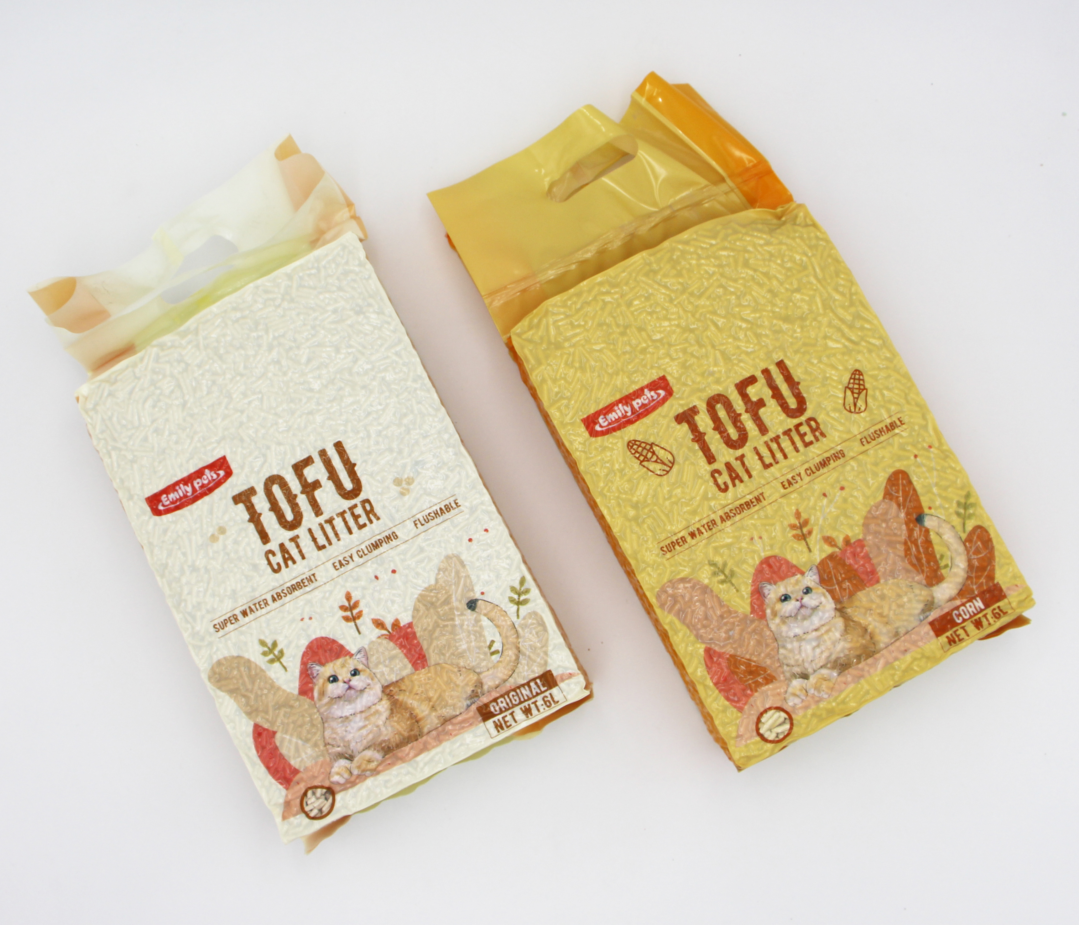 玉米/豆腐貓砂采用玉米渣等天然材料,比較健康,但整體吸水性略遜。