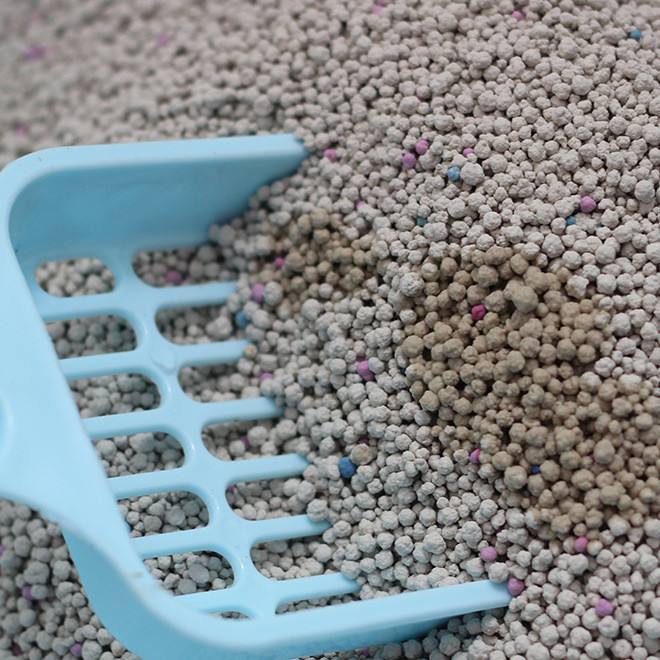 顆粒:不太揚(yáng)塵,傾倒的時候會較大一些;貓上完廁所會少量帶出